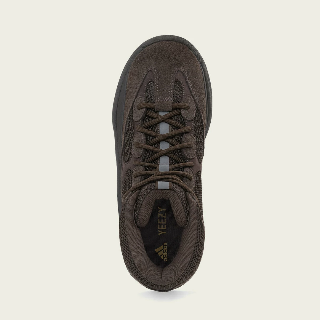 La yzy dsrt bt oil presenta una tomaia composta da nubuck e sovrapposizioni in pelle scamosciata con inserti in rete per la traspirazione e una linguetta riflettente. La suola in gomma fornisce durata e trazione.