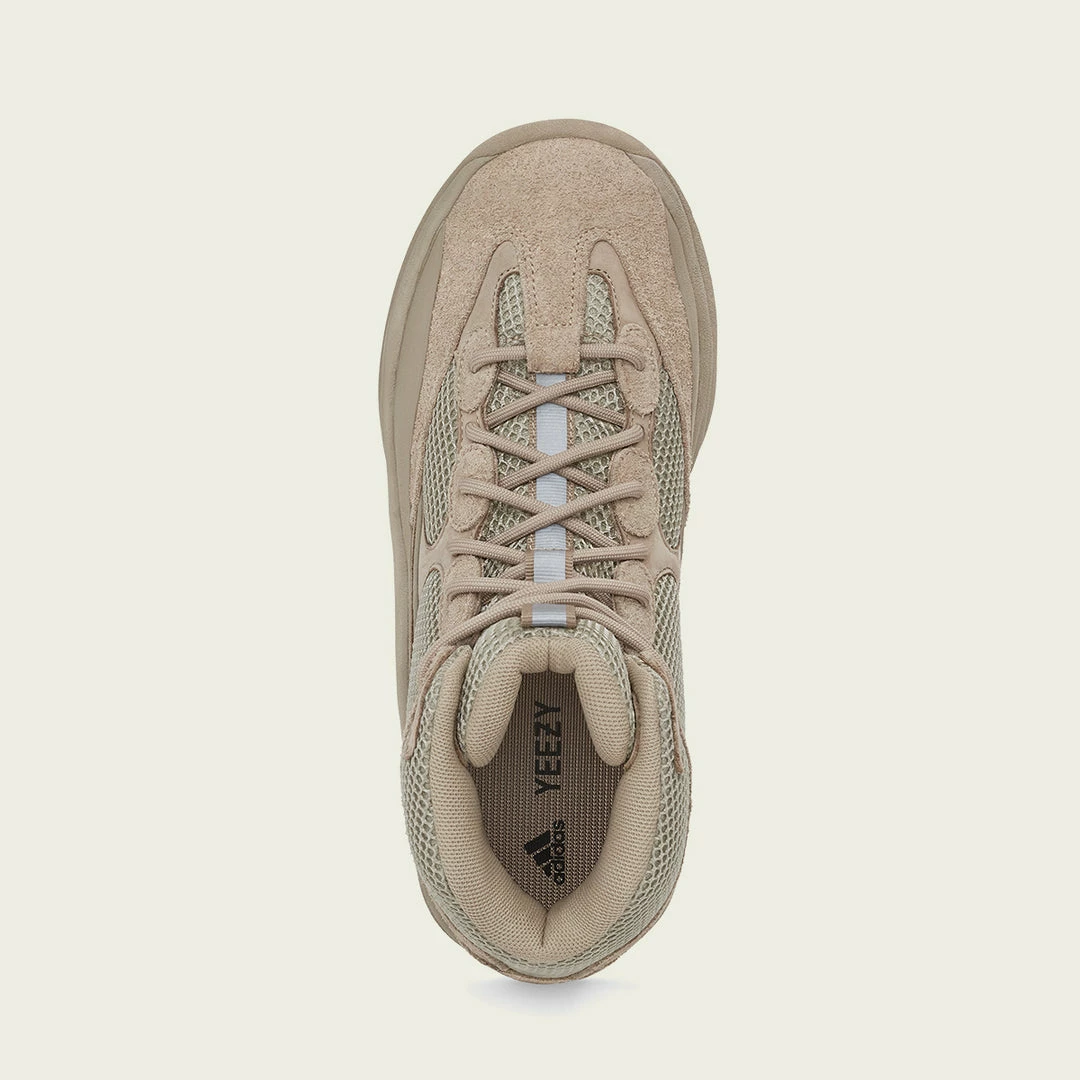 La yzy dsrt bt oil presenta una tomaia composta da nubuck e sovrapposizioni in pelle scamosciata con inserti in rete per la traspirazione e una linguetta riflettente. La suola in gomma fornisce durata e trazione.