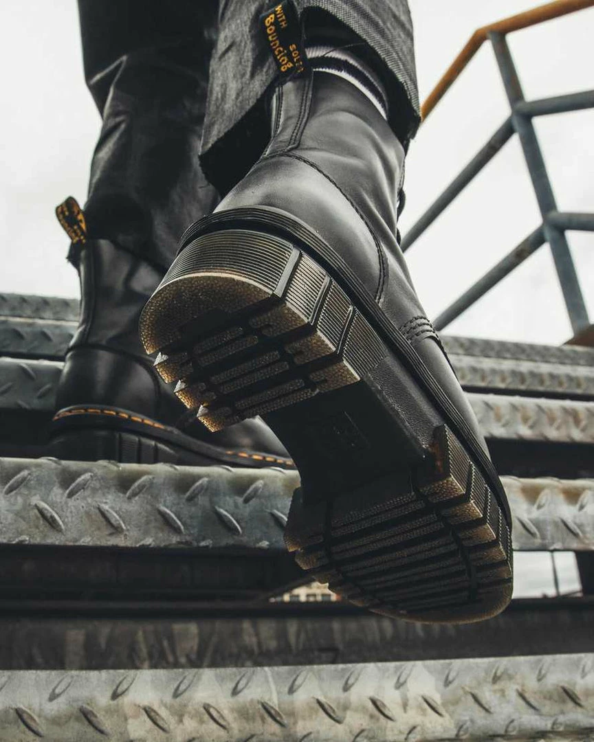 Solo per i più coraggiosi. Questi stivali poggiano sul nostro platform più alto di sempre: la suola Quad Retro Max di 6 cm. Fedeli alla nostra silhouette Original, sono realizzati in morbida pelle Pisa, presentano 8 occhielli, cuciture gialle e la nostra inconfondibile fettuccia posteriore con logo AirWair.
