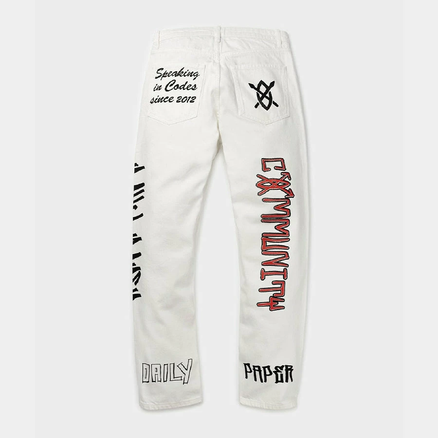 Realizzati in cotone di peso medio, questo paio di jeans classici a gamba dritta presentano un’etichetta con graffiti elevata ispirata all’eredità del marchio Daily Paper. Gli elementi in denim tradizionali includono cuciture a contrasto, passanti per cintura, chiusura con bottoni e cinque tasche, di cui una per riporre i contanti se è il tuo genere. Copri il set e abbinalo a un maglione Marcus abbinato.