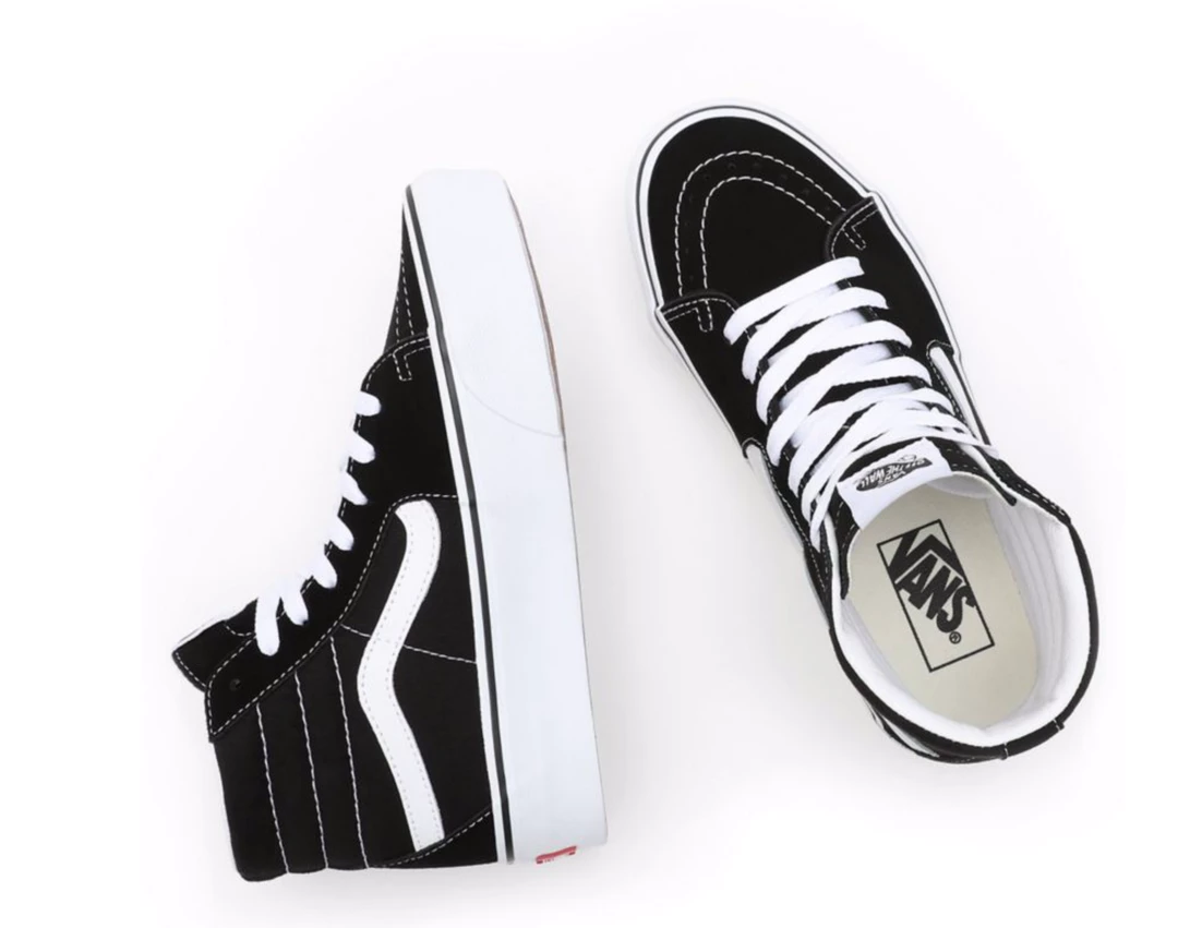 Le Vans Sk8-Hi Platform 2.0, stringate e dal profilo alto, presentano un collo imbottito per un comfort extra, e un’originale suola waffle con plateau in gomma che garantisce alla scarpa un’aderenza ottimale.